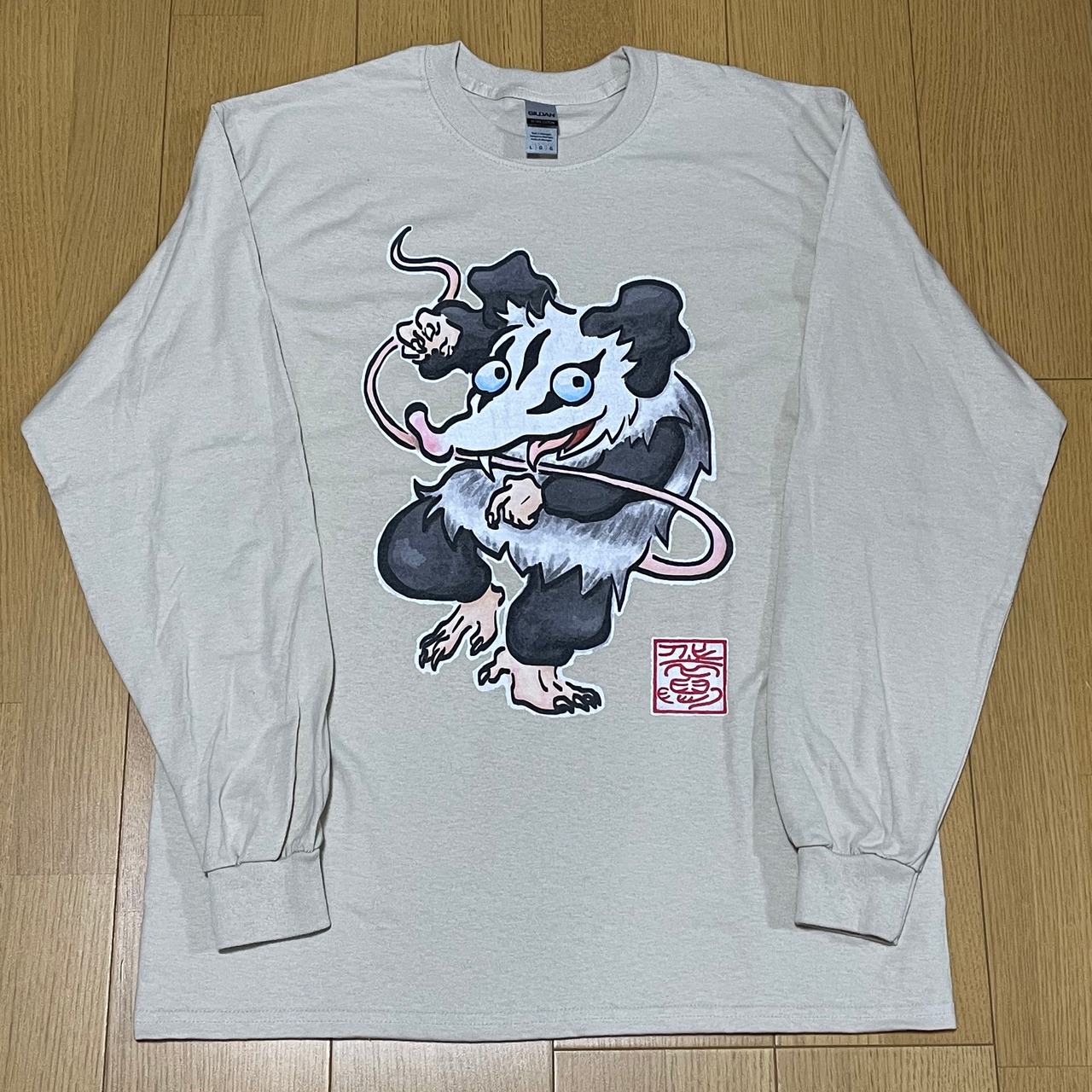北米に生息する有袋類『オポッサム』をなぜか和風にデザインした長袖シャツ